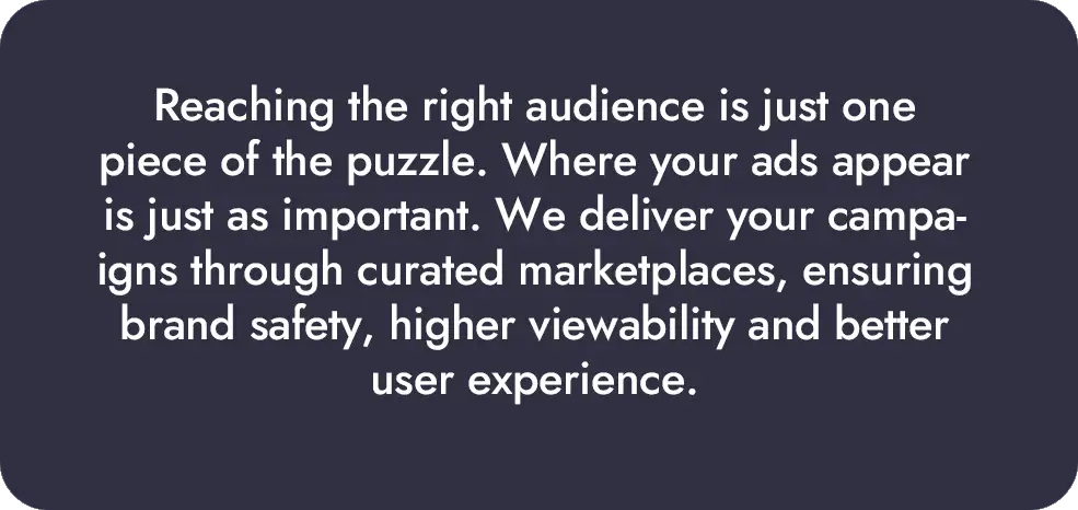 Yes! We tailor each campaign based on your goals, audience, and performance needs. Whether you want to focus on specific publishers, audience segments, or engagement metrics, our curated marketplace approach ensures your ads reach the right viewers at the right time.